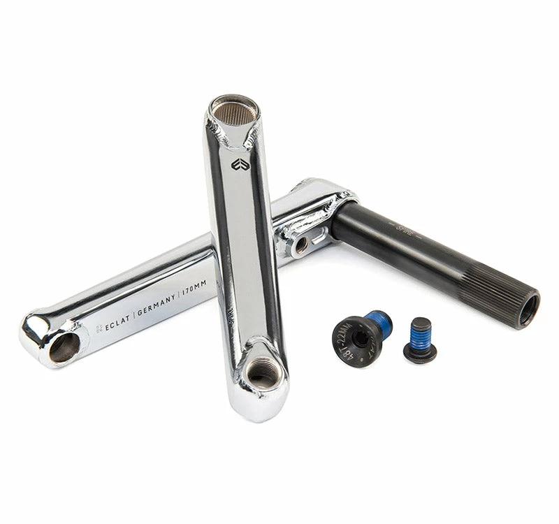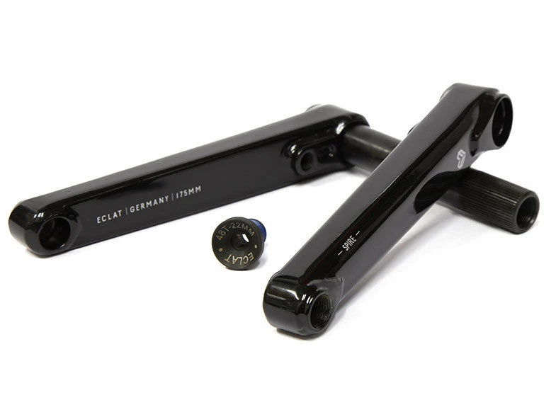 The Eclat Spire Cranks take the proven 2.5 piece system of their very strong Tibia cranks and updates them with a super tough, box-section arm design that will remain incredibly stiff and dent resistant. Tested by the Eclat PRO team, the result is a super strong and reliable crank built to shred.