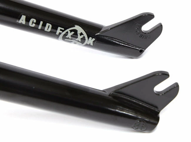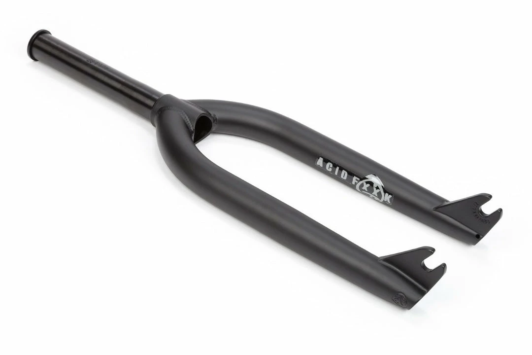 The BSD ACID V2 forks could be the burliest fork we’ve stocked. BSD took the proven Ghetto fork design and beefed everything up, with a new tougher steerer tube, wider clearance for fat tires, a shorter 30mm offset and newly designed investment cast dropouts that fit pegs better.