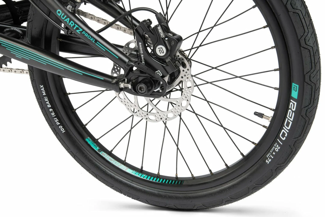 - TIRES: Radio Oxygen Foldable, tubeless ready 20 x 1.75″ F, 20 x 1.6″ R